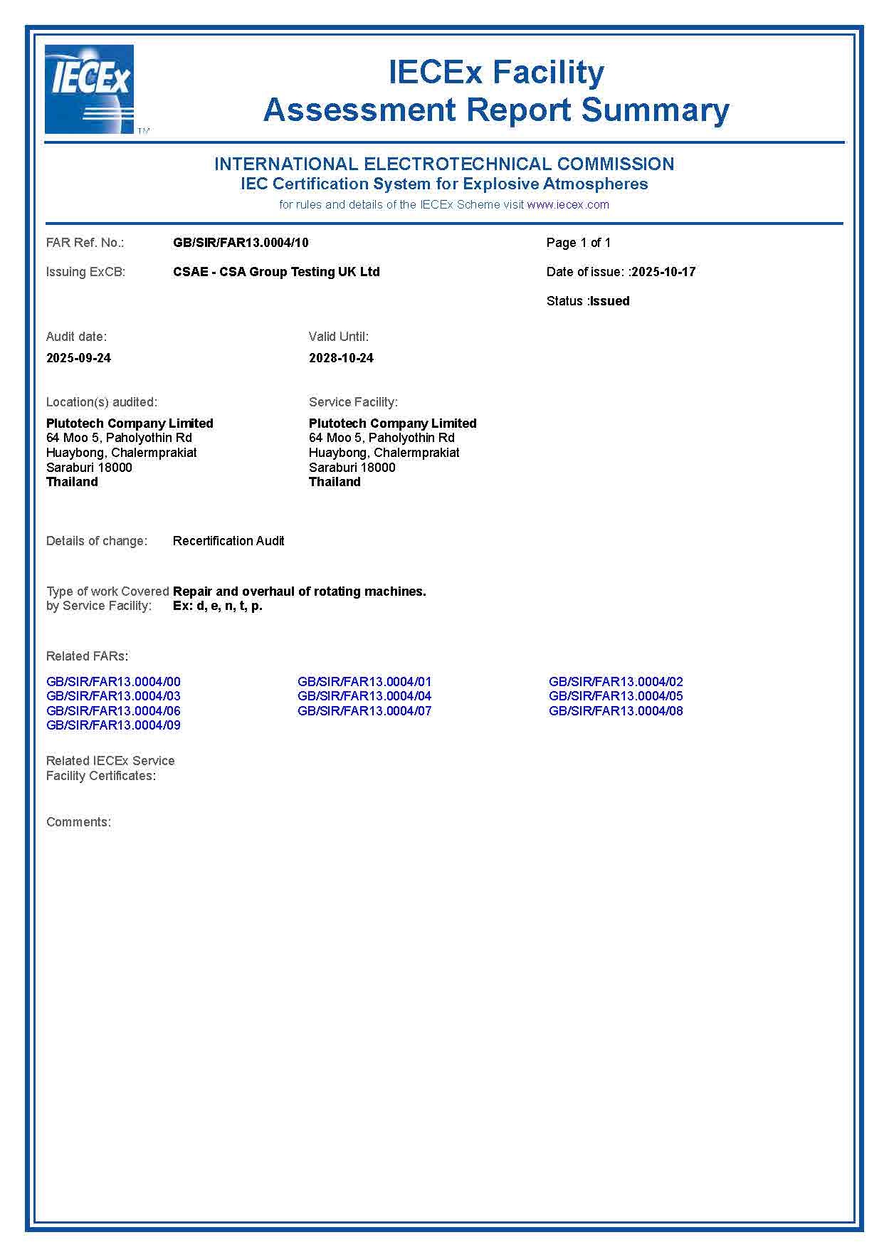 FAR Ref. No.: GB/SIR/FAR13.0004/10 | Status: Issued | Valid until: 2028-10-24